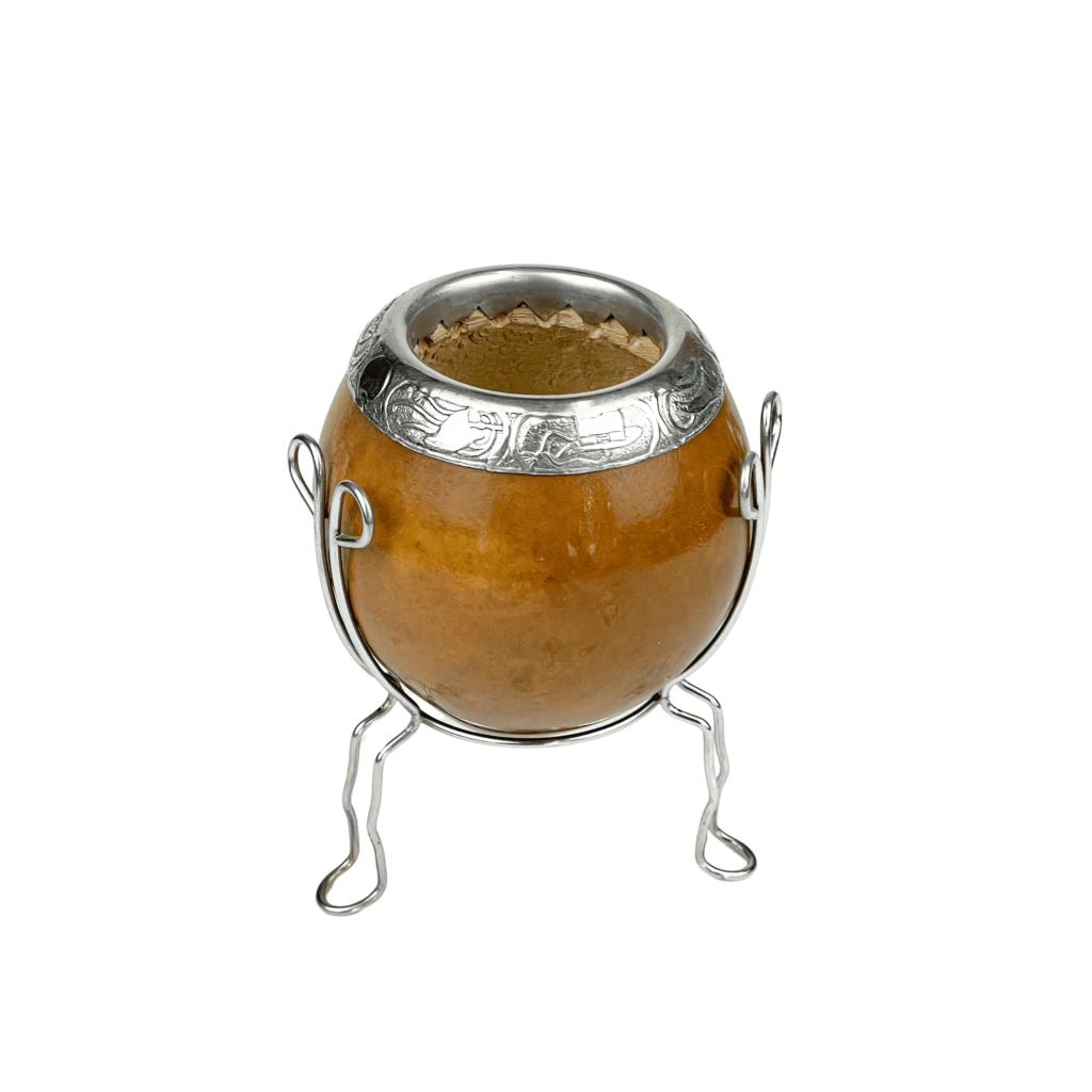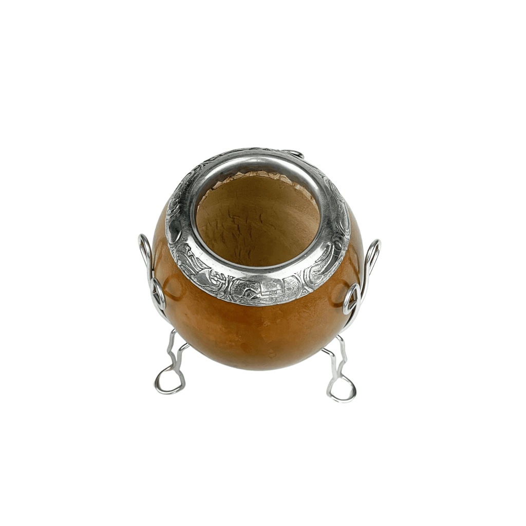 Cuia Uruguaia Coquinho de Porongo com Bocal Metal e Suporte Arame para Chimarrão